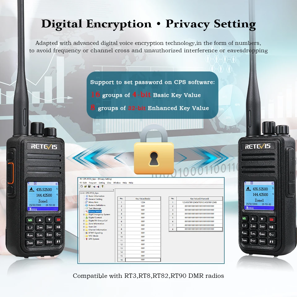 RETEVIS RT3S DMR Radio Digital Walkie Talkie GPS DMR Ham Radio Amador 5W VHF UHF Dual Band Encryption Compatible with Mototrbo