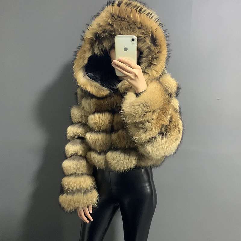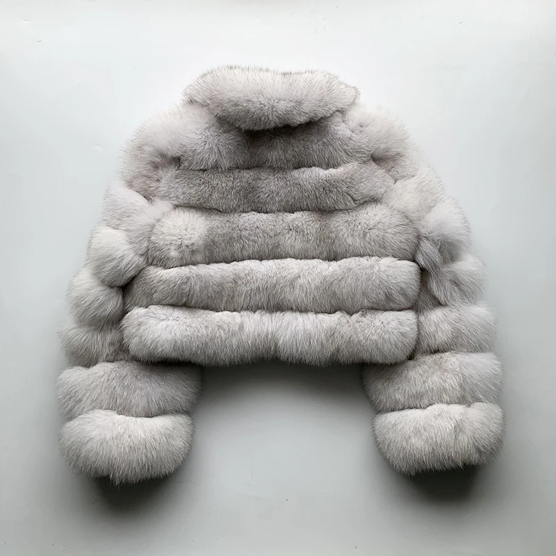 rf1982 Winter Woman’s Fashion Short Style Slim Fit Zipper Real Fox Fur Jacket