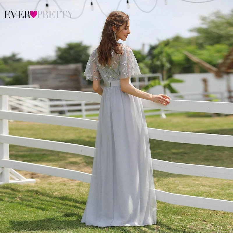 Robe De Soiree Sparkle Evening Dresses Long Ever Pretty EP00904GY A-Line O-Neck Short Sleeve Formal Dresses Women Elegant Gowns