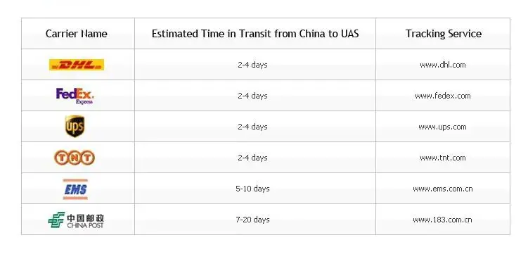 Packages from our warehouse in China will be shipped by ePacket or EMS depending on the weight and size of the product. Packages shipped from our US warehouse are shipped through USPS.