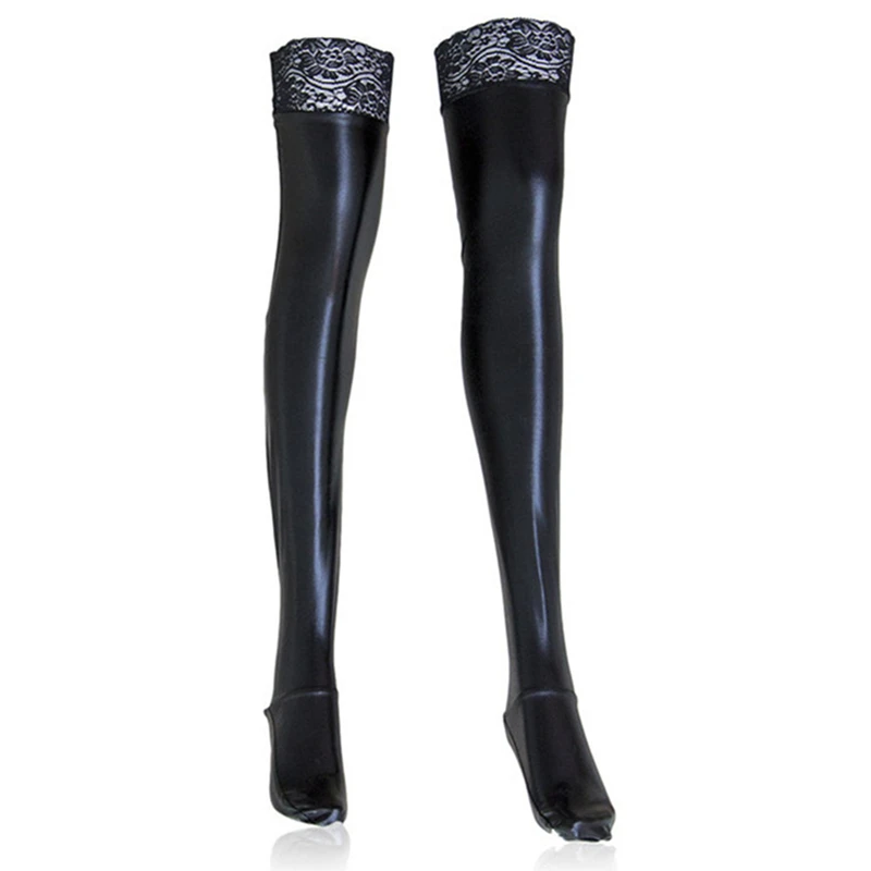 S M L XL XXL Pole Dance Sexy Stockings For Women Sexy Lingerie Hot Night Club PVC Leather Stockings Large Size Over Knee Socks