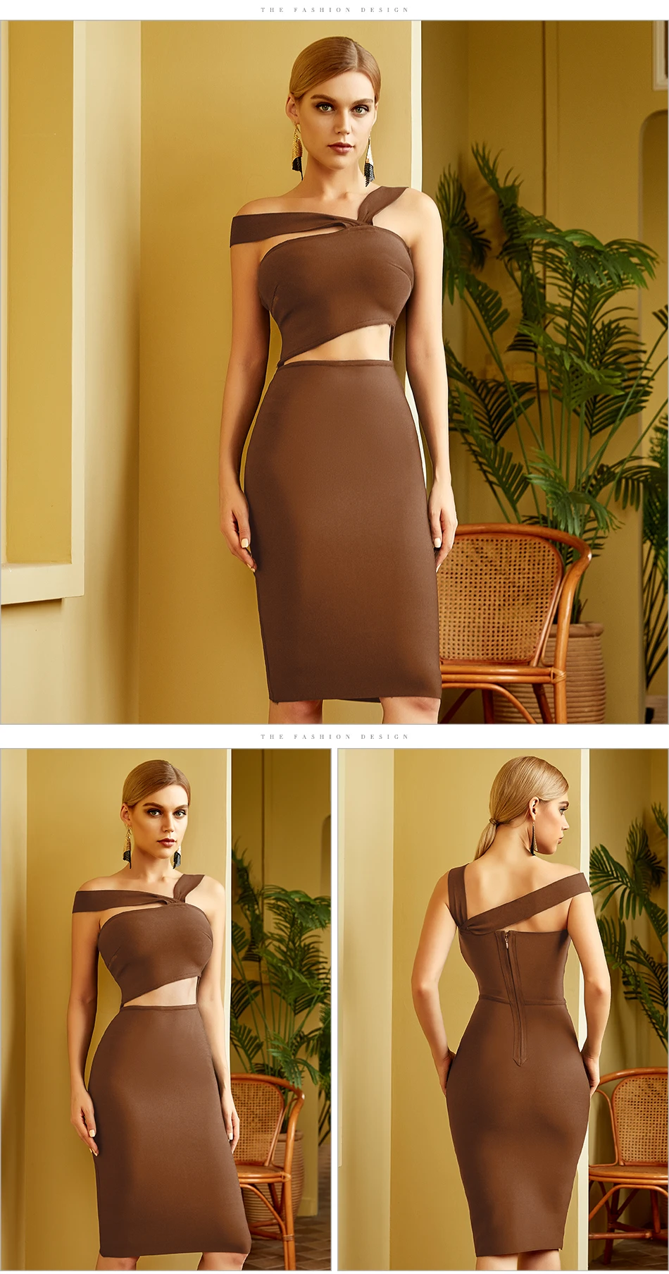 Seamyla 2020 Summer Women Hollow Out Sleeveless Bodycon Bandage Dress Sexy Knee Length Khaki Club Celebrity Runway Party Dresses