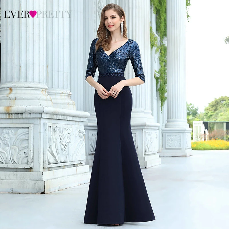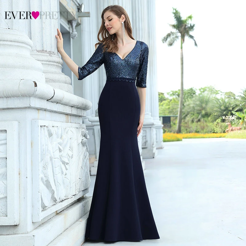 Sequin Gown Evening Dresses Ever Pretty EP00556NB Elegant Navy Blue Mermaid V Neck Half Sleeve Formal Party Dress Vestido Longo