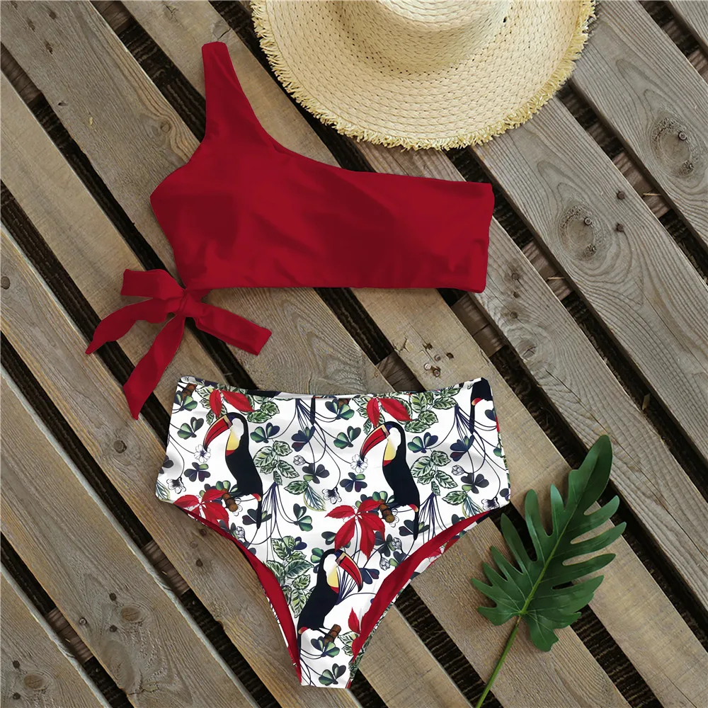 Sexy Bikinis Women 2020 New One Shoulder Swimwear High Waist Swimsuit Bandage Bathing Suits Beach Wear Biquini Female