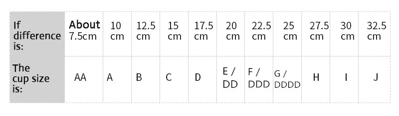 NOTE: DD = E Cup ; DDD = F Cup; DDDD = G Cup.