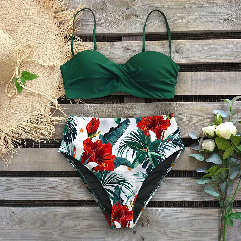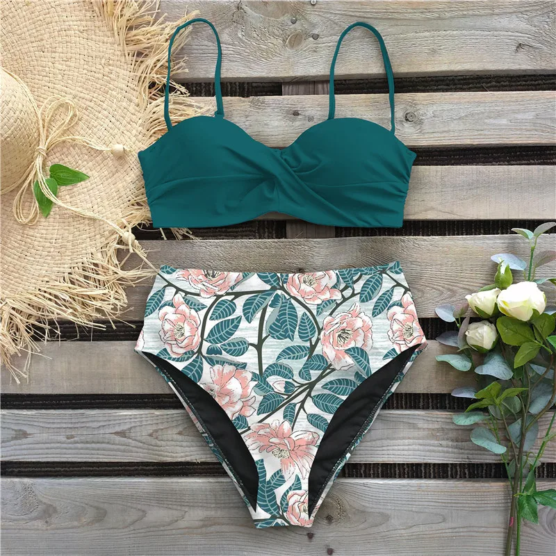 Sexy Leaf Print Bikini 2020 Female Swimsuit Women Swimwear Thong Push Up Bikinis Set High Waist Swimming Suits for Bathing Suit