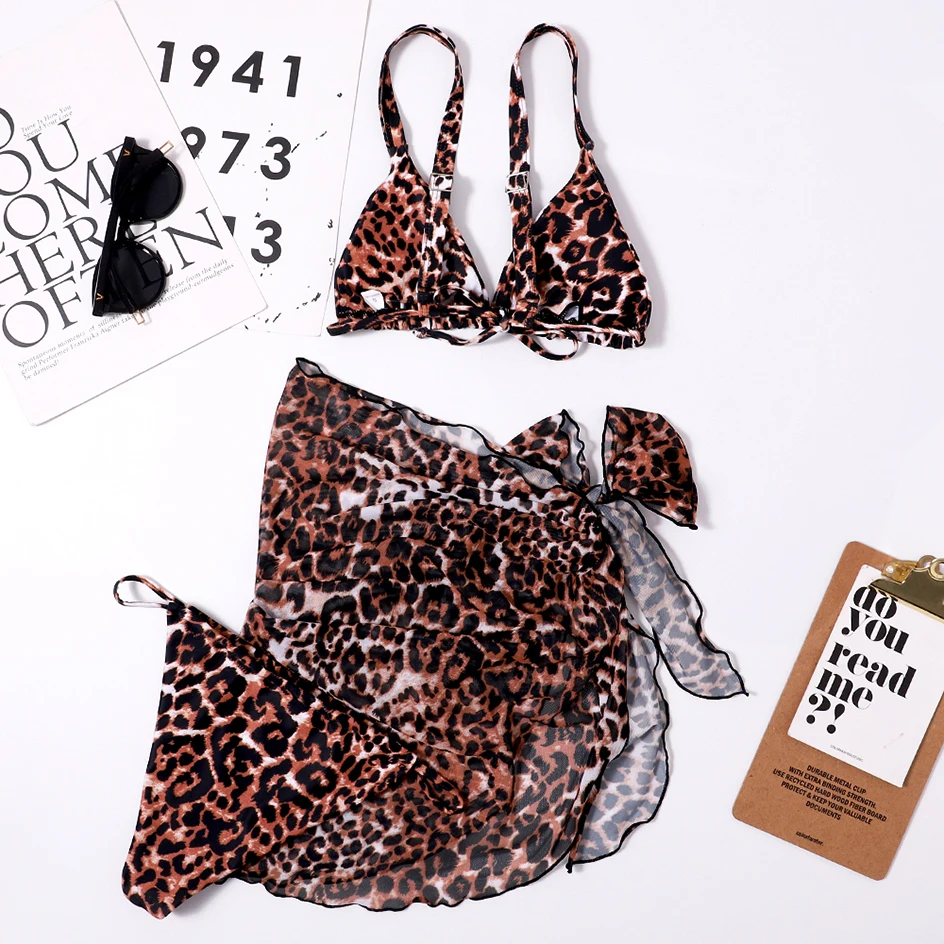 Sexy Leopard Bikini 2021 Swimsuit Women Mesh High Cut Micro Thong Bikinis Set Swimwear Female Bathing Suit 3 Piece Set Swimsuits