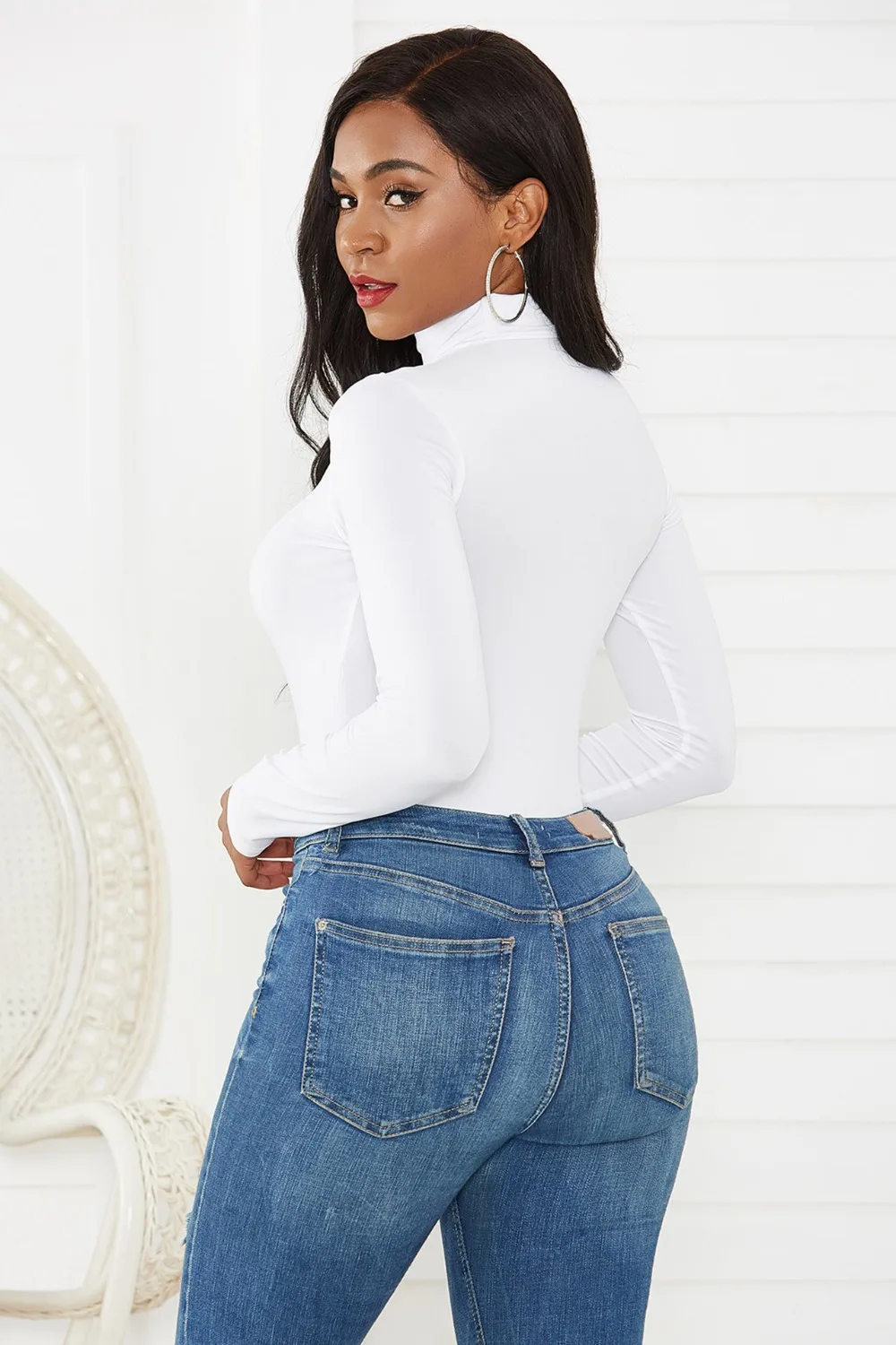 Sexy One Piece Bodycon Bodysuit Long Sleeve Turtleneck Open Basic White Black Red Overalls Women Body Top Skinny Rompers Female