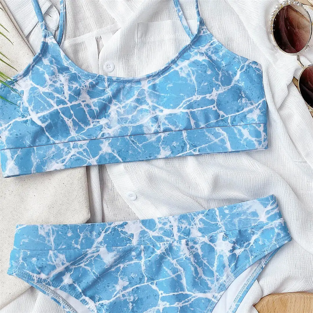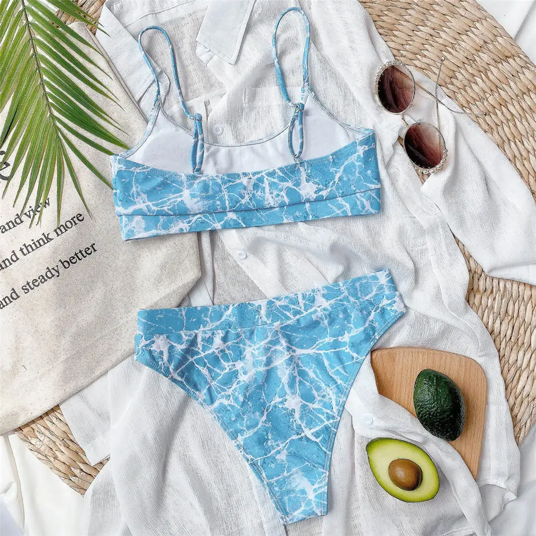 Sexy Ribbed Female Swimsuit High Waist Bikini Sky Blue Purple Women Swimwear Two-piece Bikini set Bather Bathing Suit Swim V2439