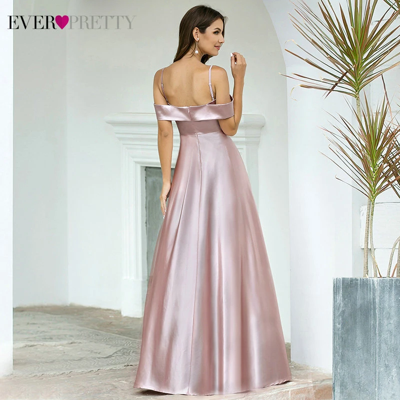 Sexy Satin Prom Dresses Ever Pretty EP00505MV A-Line Spaghetti Straps V-Neck Off Shoulder Party Gowns Vestido De Festa 2020