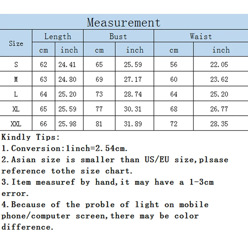 2. Please allow 2-3cm differences due to manual measurement. (1cm=0.39inch, 1 inch=2.54cm)