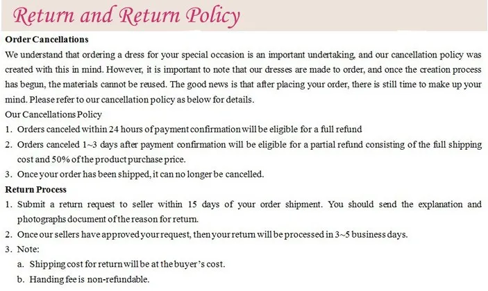 All orders can be cancelled until they are shipped. If your order has been paid and you need to make a change or cancel an order, you must contact us within 12 hours. Once the packaging and shipping process has started, it can no longer be cancelled.