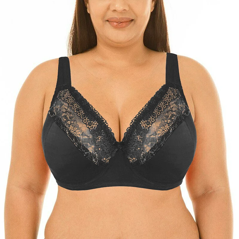 Sexy Women Bra Lace Big Bralette Full Cup Underwired Support Bra Top Lingerie Plus Size 40 42 44 46 48 50 DD E F FF G Cup