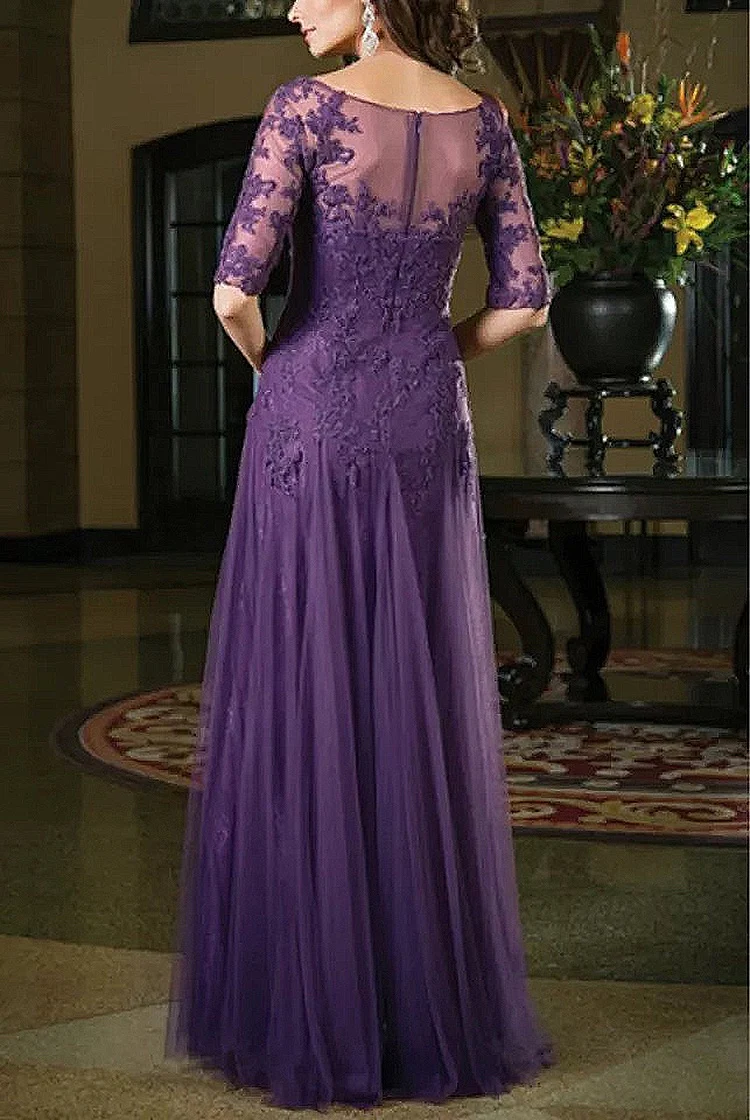 Sheer Neck Half Sleeve Mother Of The Bride Dresses 2020 Appliqu Groom Godmother Evening Dress For Wedding Party Prom Mother Gown
