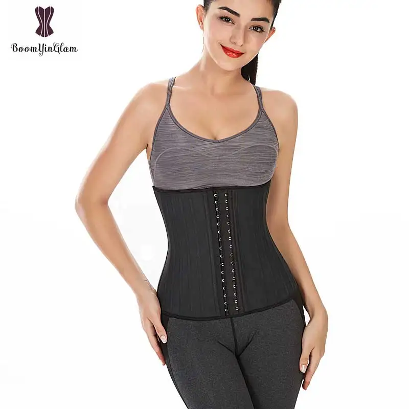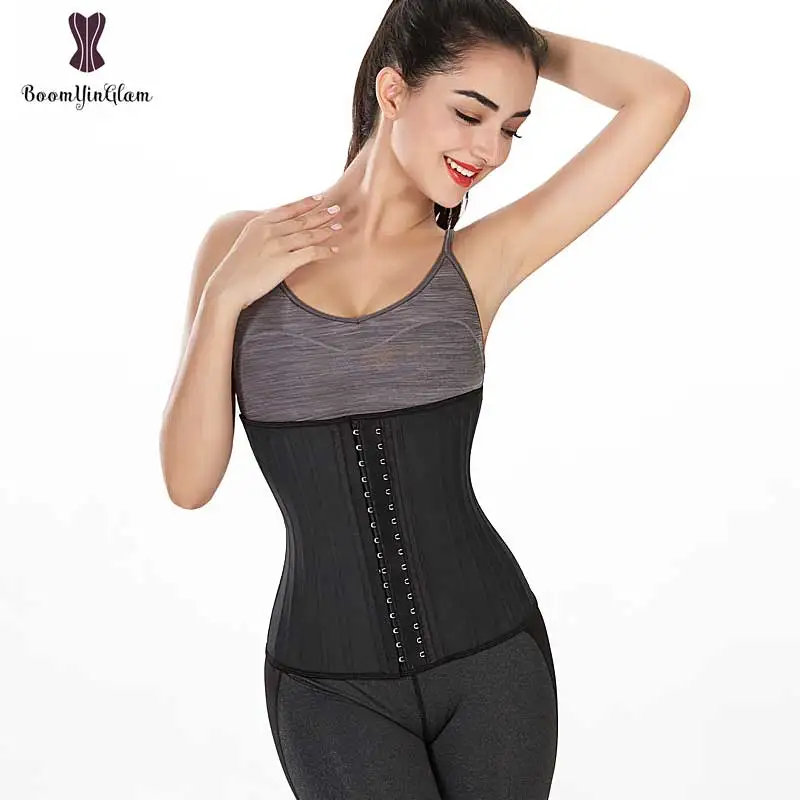 Shinning Latex Waist Trainer 25 Spiral Steel Boned Black Cream Waist Slimming Cincher 3 Hooks And Eyes Corset Underwear Corselet