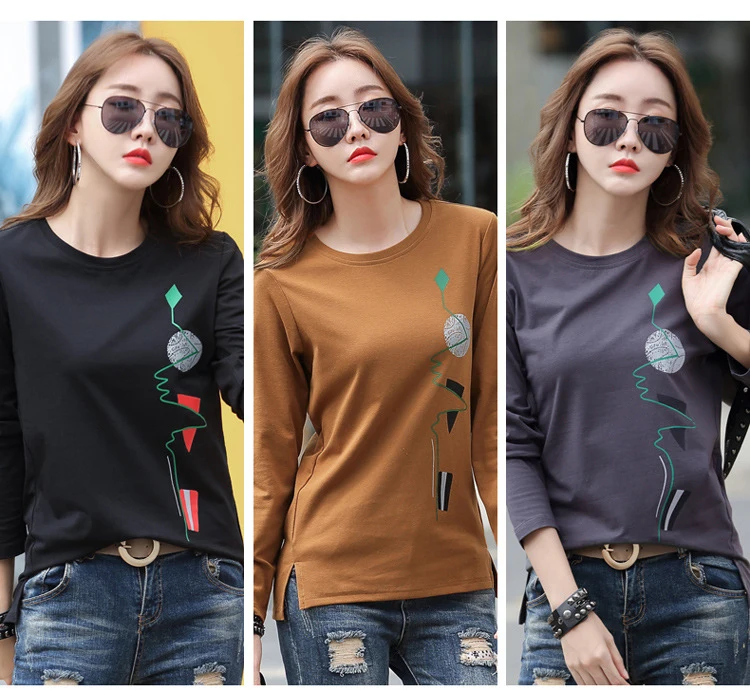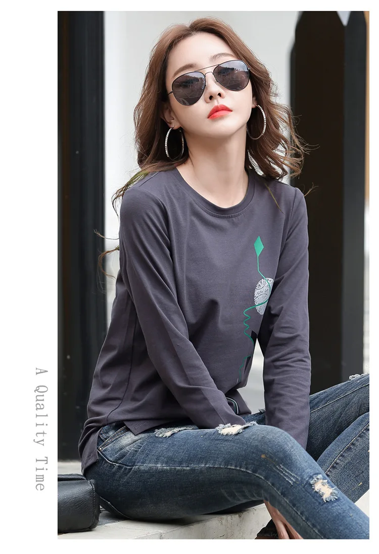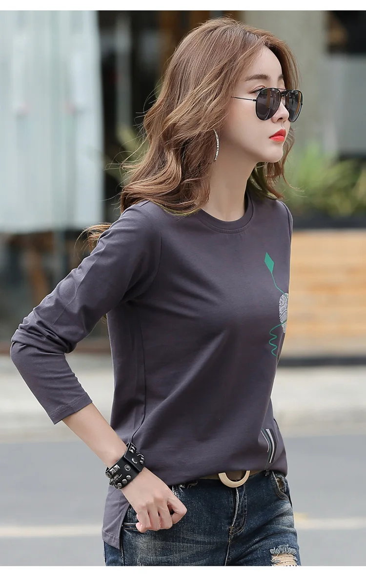 shintimes Plus Size Print Cotton T Shirt Women Korean Clothes 2020 Autumn T-Shirt Womens Long Sleeve Woman Tops Tee Shirt Femme