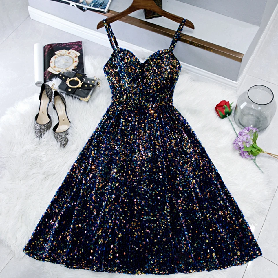 Shiny Sequined Navy Blue Short Cocktail Prom Dresses Vestidos De Gala 2020 Women Robe Party Graduation Gowns Homecoming Dress