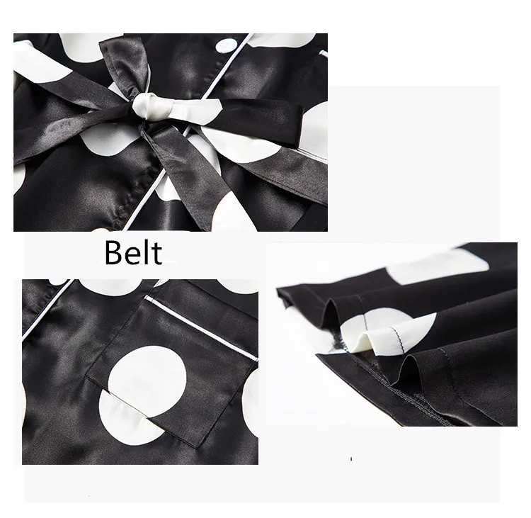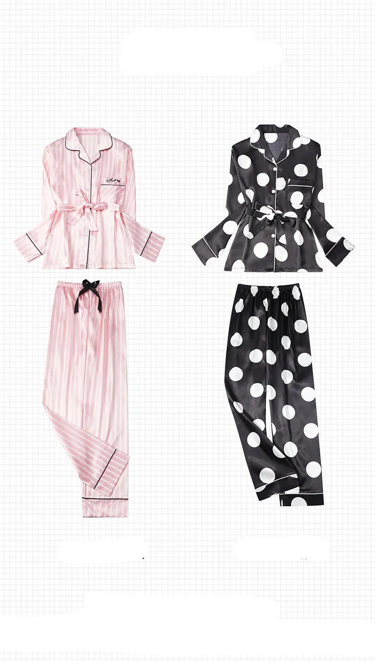 Silk Pajamas Set Women Sexy Print Dot Summer Female Pyjamas Long Shirt 2Piece/Set Stitch Lingerie 2019 Home Sleepwear