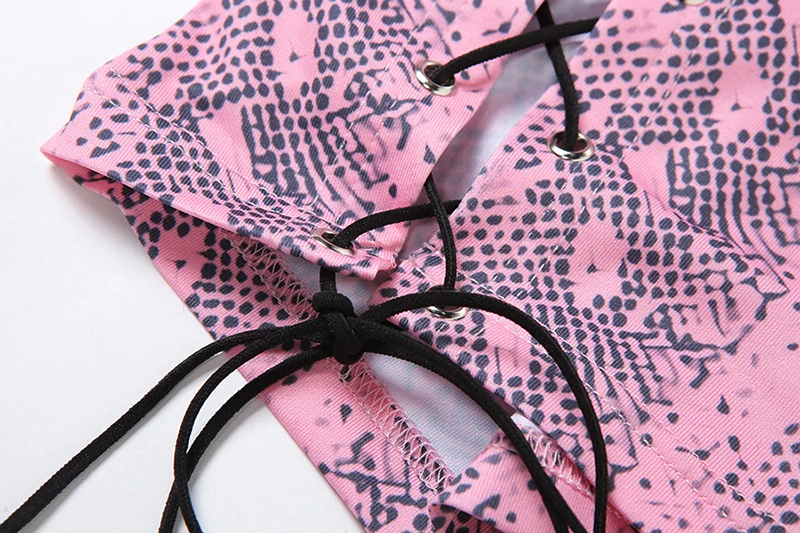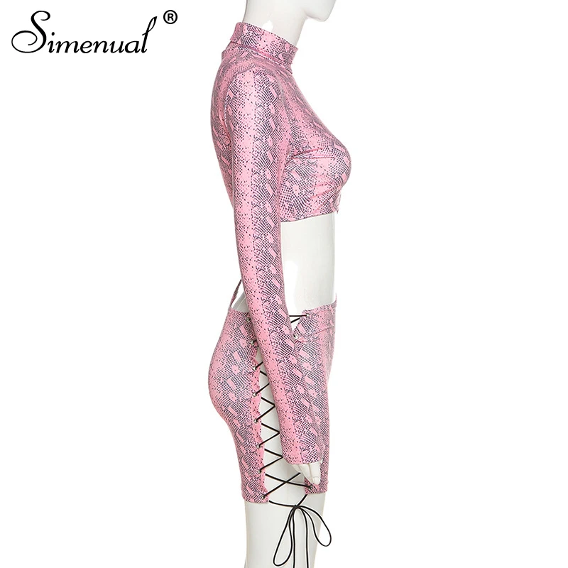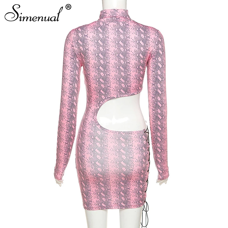 Simenual Snake Print Hollow Out Party Dresses Lace Up Mock Neck Women Long Sleeve Night Clubweat Skinny Sexy Hot Bodycon Dress