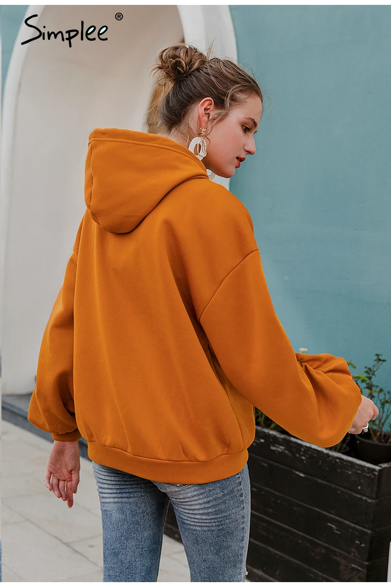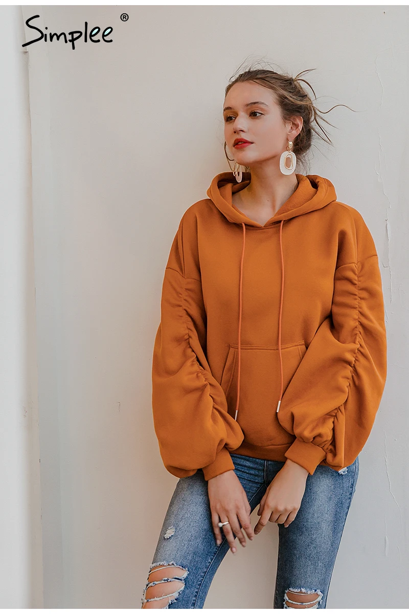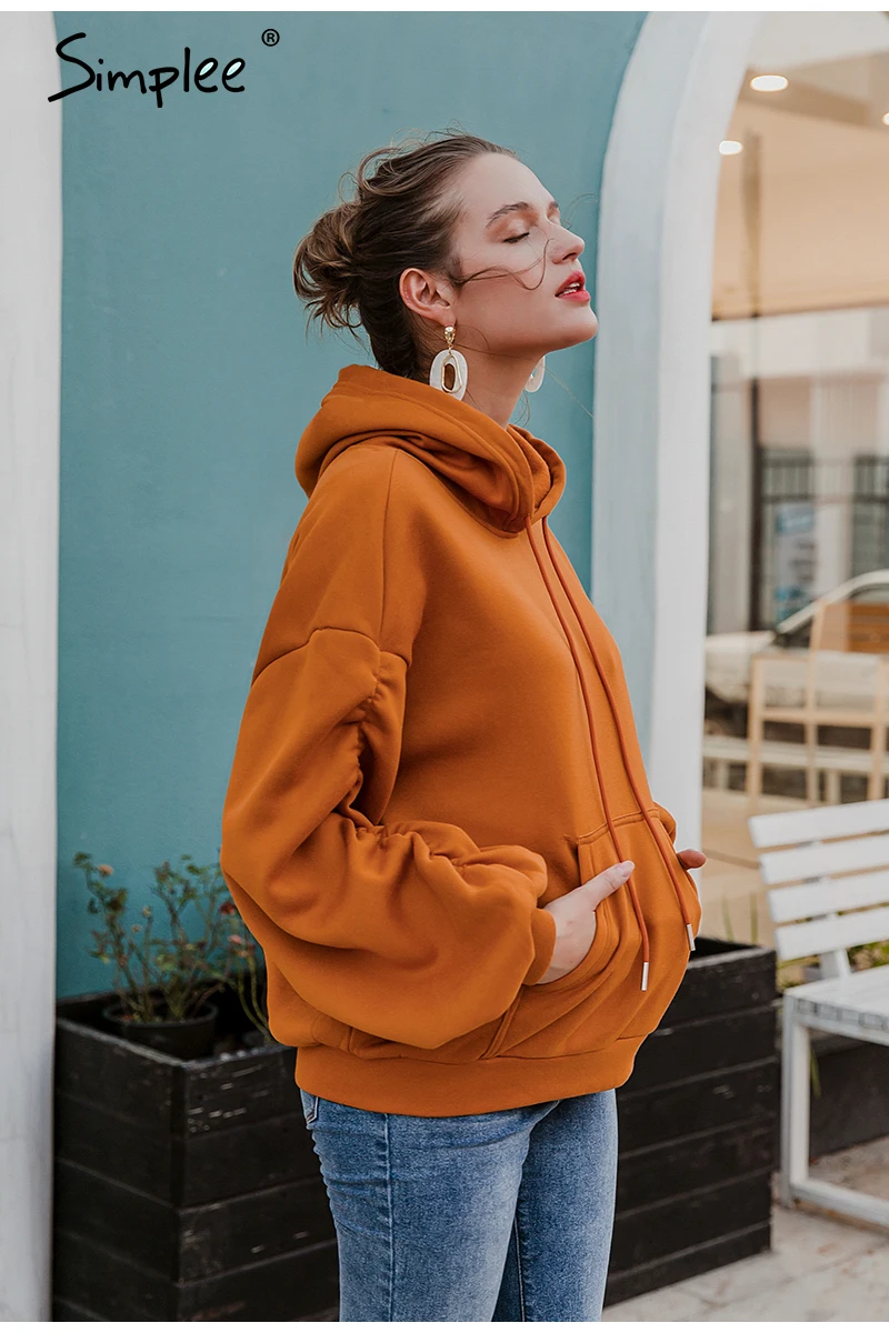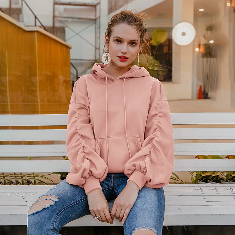 Simplee Causal Pink Autumn Winter Fleece Hoodies Women Fashion Drawstring Sleeve Sweatshirt Female fleece tracksuit Jacket 2020