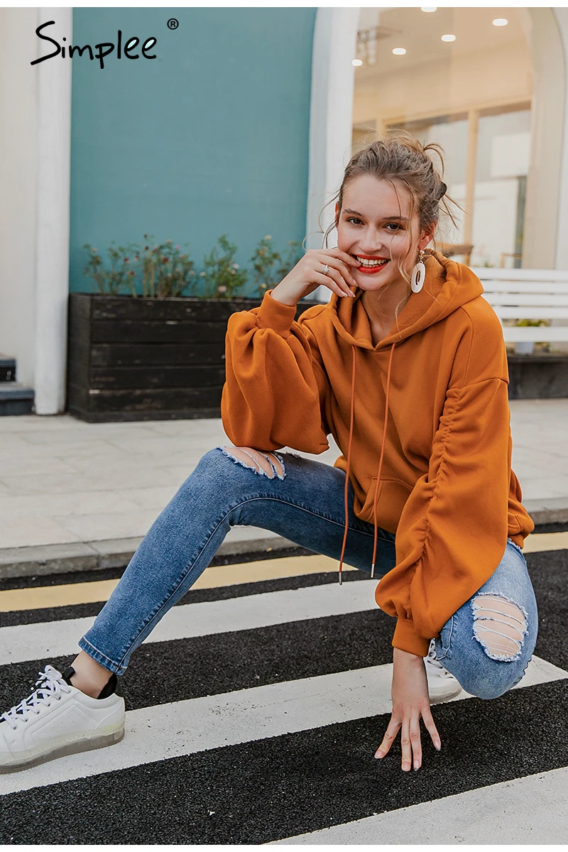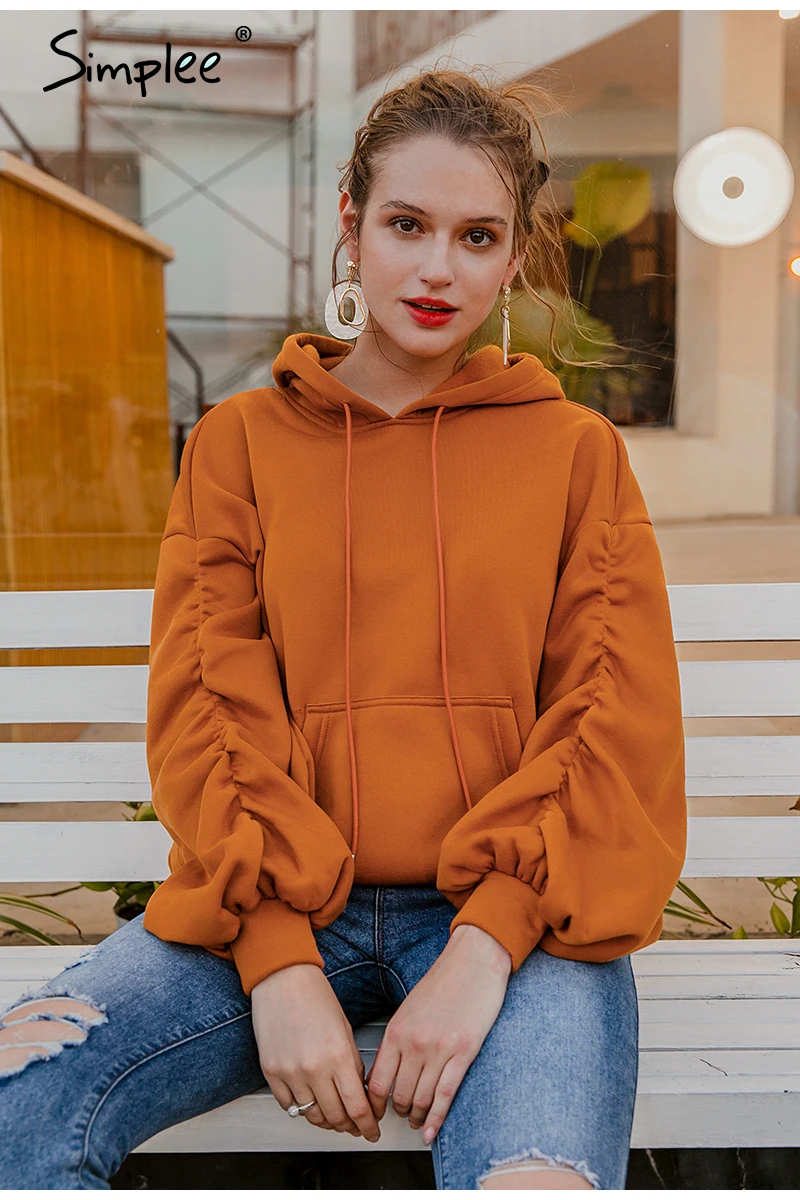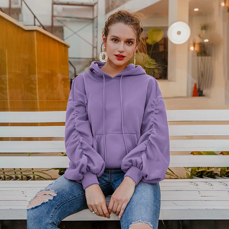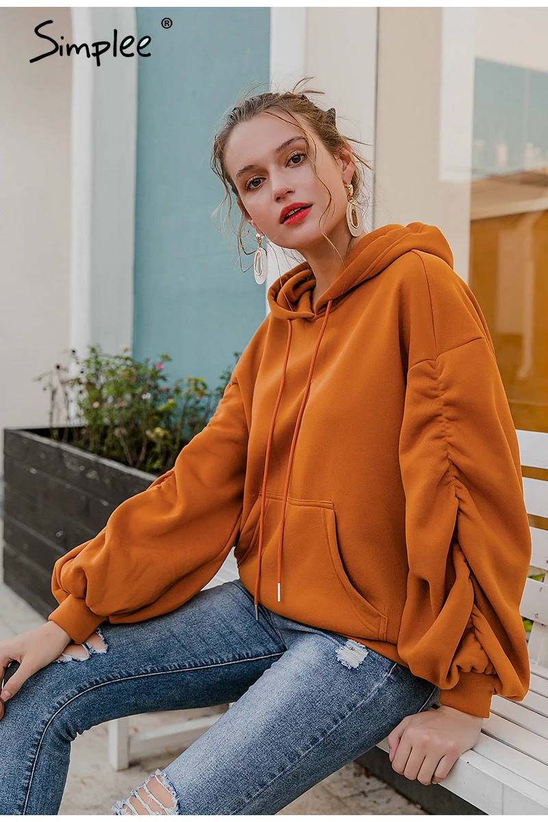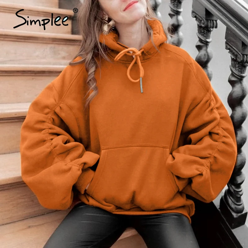 Simplee Causal Pink Autumn Winter Fleece Hoodies Women Fashion Drawstring Sleeve Sweatshirt Female fleece tracksuit Jacket 2020
