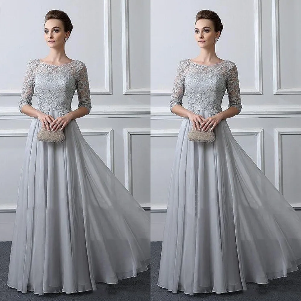 Sliver Lace Mother Of The Mother Dresses with Half Sleeves A-Line Chiffon Wedding Guest Mothers Gown 2020 Evening Prom Dress New
