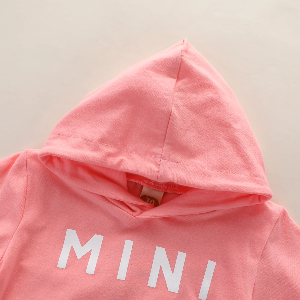 Spring Autumn Toddlers Sportwear 100% Cotton Clothes Set Baby Girls Lette Long Sleeve Hooded Top + Sports Style Trousers Kit