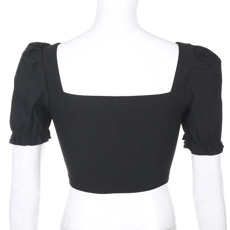 SUCHCUTE square neck female T-shirt puff sleeve black wild tee summer 2020 streetwear gothic vintage women tee outfits