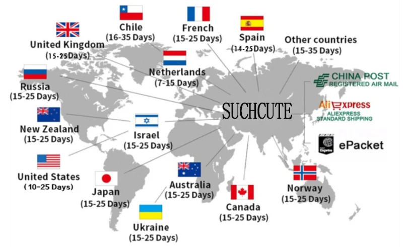 Packages from our warehouse in China will be shipped by ePacket or EMS depending on the weight and size of the product. Packages shipped from our US warehouse are shipped through USPS.