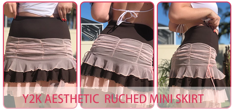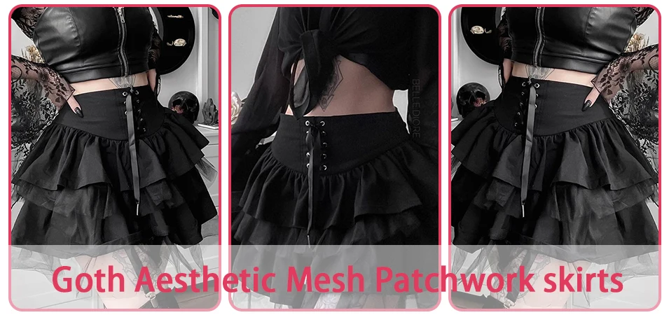 SUCHCUTE Women’s Skirts Gothic Harajuku Bandage Faux Leather Korean Fashion Black Mini Pleated Skirts 2020 Summer Party Pu Saias