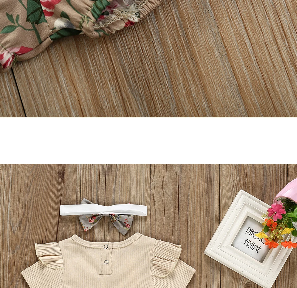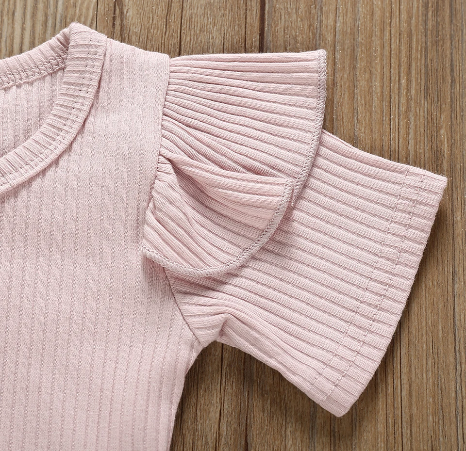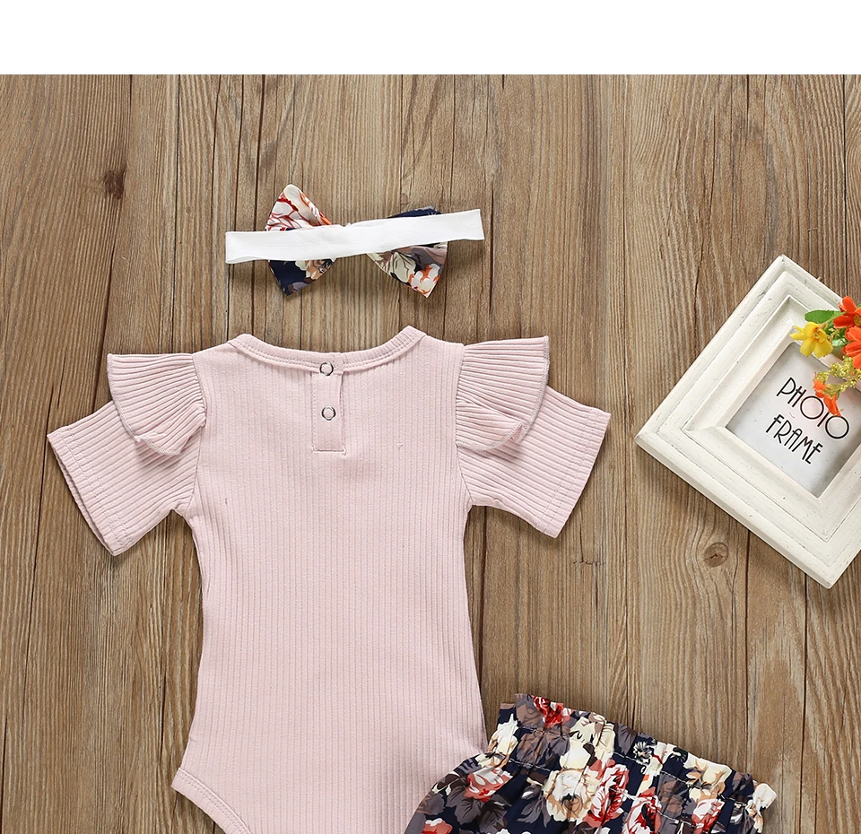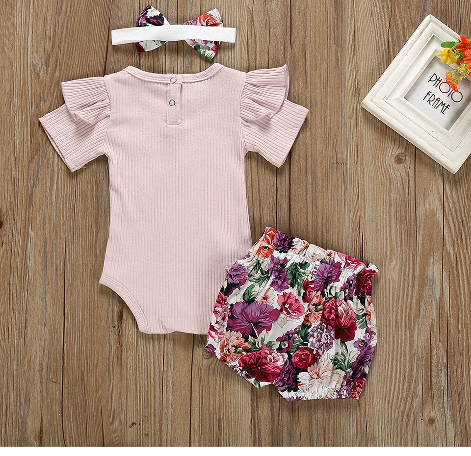 Summer Newborn Baby Girl Clothes Set Solid Color Short Sleeve Ruffle Romper Tops Flower Short Pants Headband 3Pcs Infant Outfits