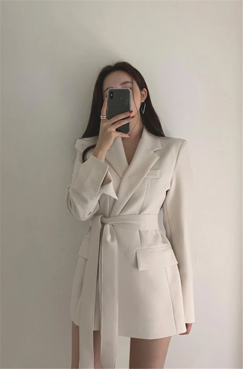 Sungtin 2020 Office Lady Tailored Coat Women OL Elegant Black Beige Blazer Jacket Long Outwear Sashes Autumn New Fashion Blazers