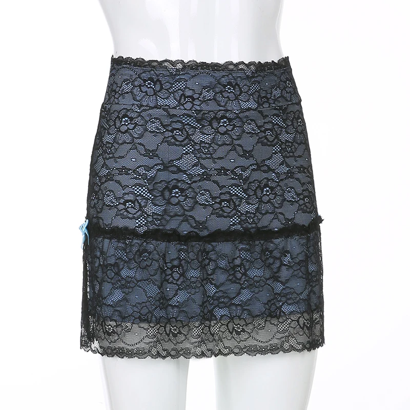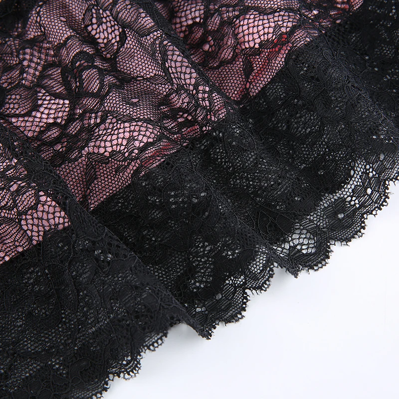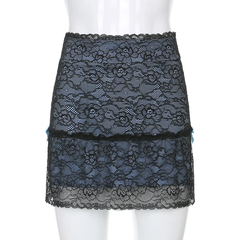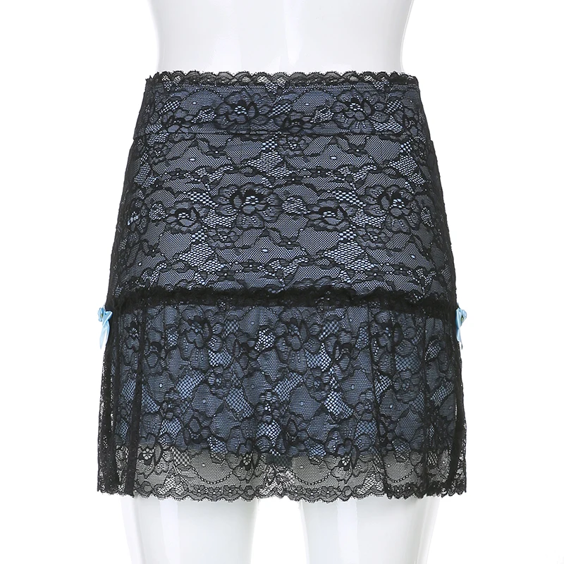Sweetown Patchwork Lace Gothic Y2K Skirt Woman Punk Style Dark Academia Aesthetic Vintage 90s Streetwear Goth Mini Skirts