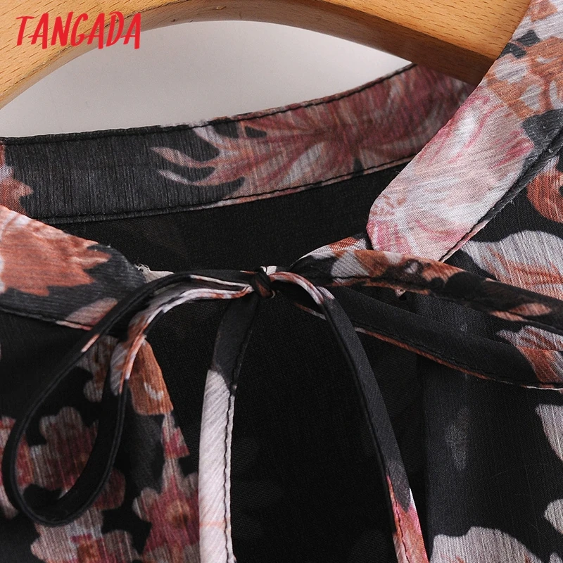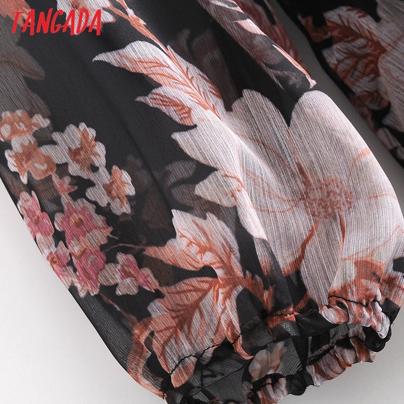 Tangada 2020 Autumn Fashion Women Flowers Print Chiffon Dress Strethy Waist Long Sleeve Ladies Elegant Midi Dress 3A107