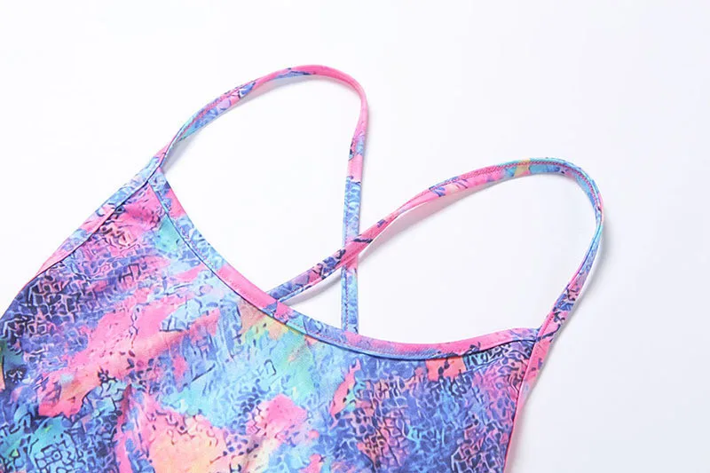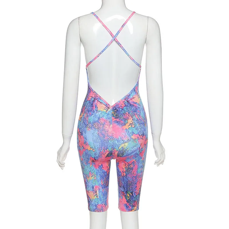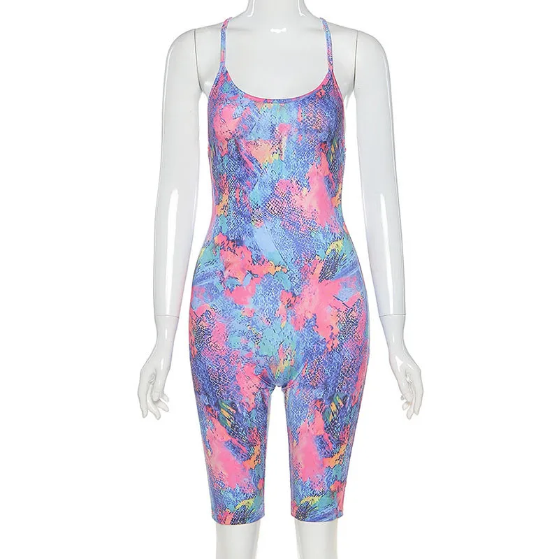 Tie Dyeing Print Backless Jumpsuit Rompers Trousers Clubwear 2020 New Sexy Women Sleeveless Strap Rompers Playsuit Summer Shorts
