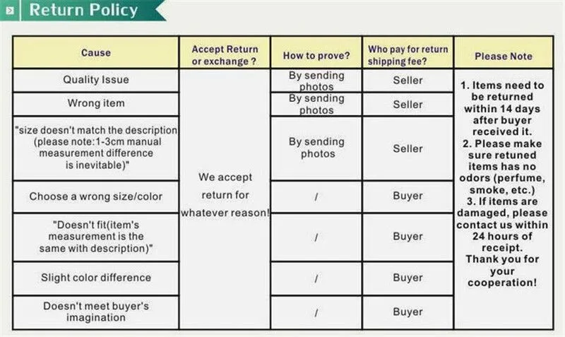 It's okay to change your mind! You can send your order back for a full refund, we've got you covered with our full Buyer protection.