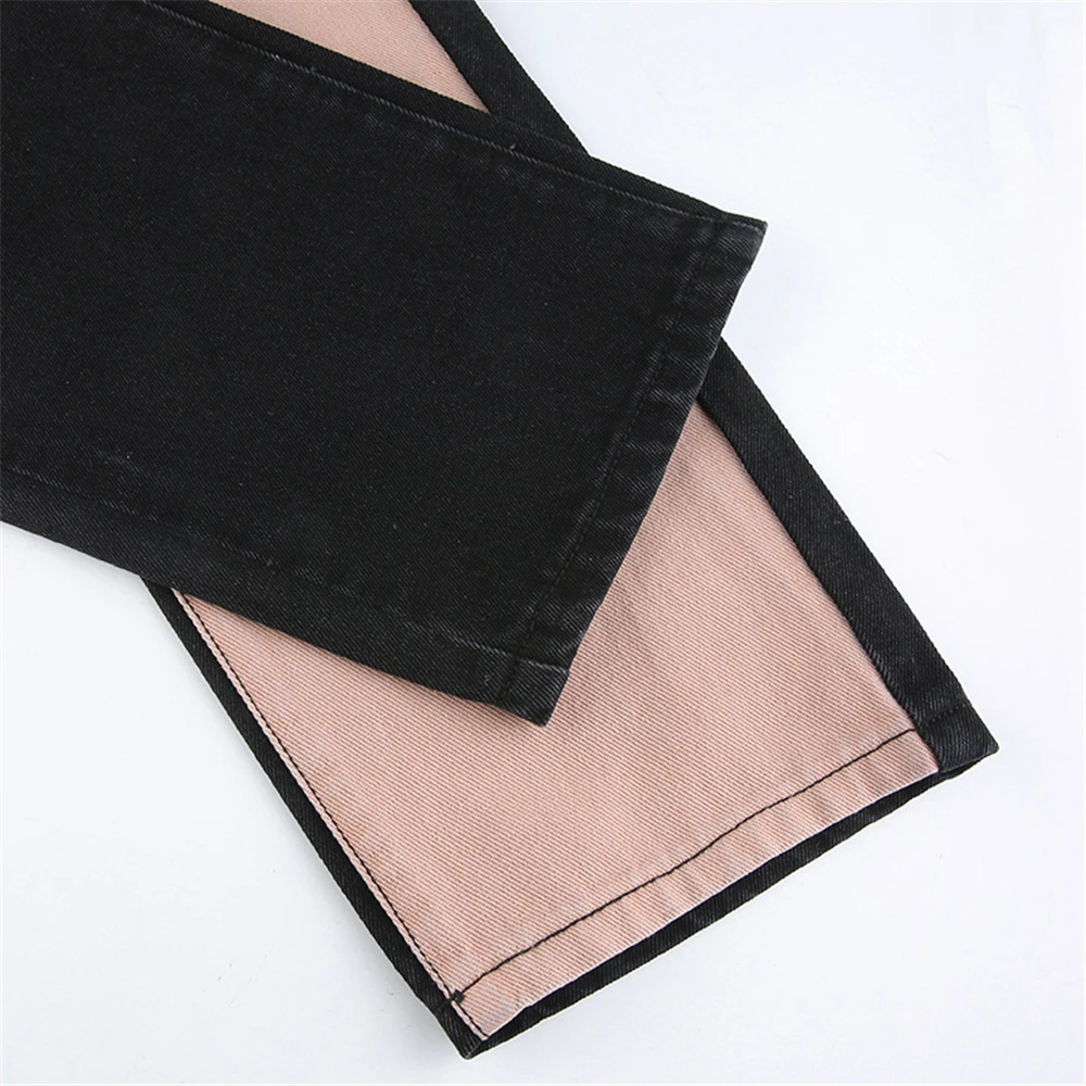 Tsuretobe Patchwork Jeans Streetwear Women y2k Pants Women High Waist Baggy Jeans 2020 Fashion Straight Pants Casual Mom Jeans