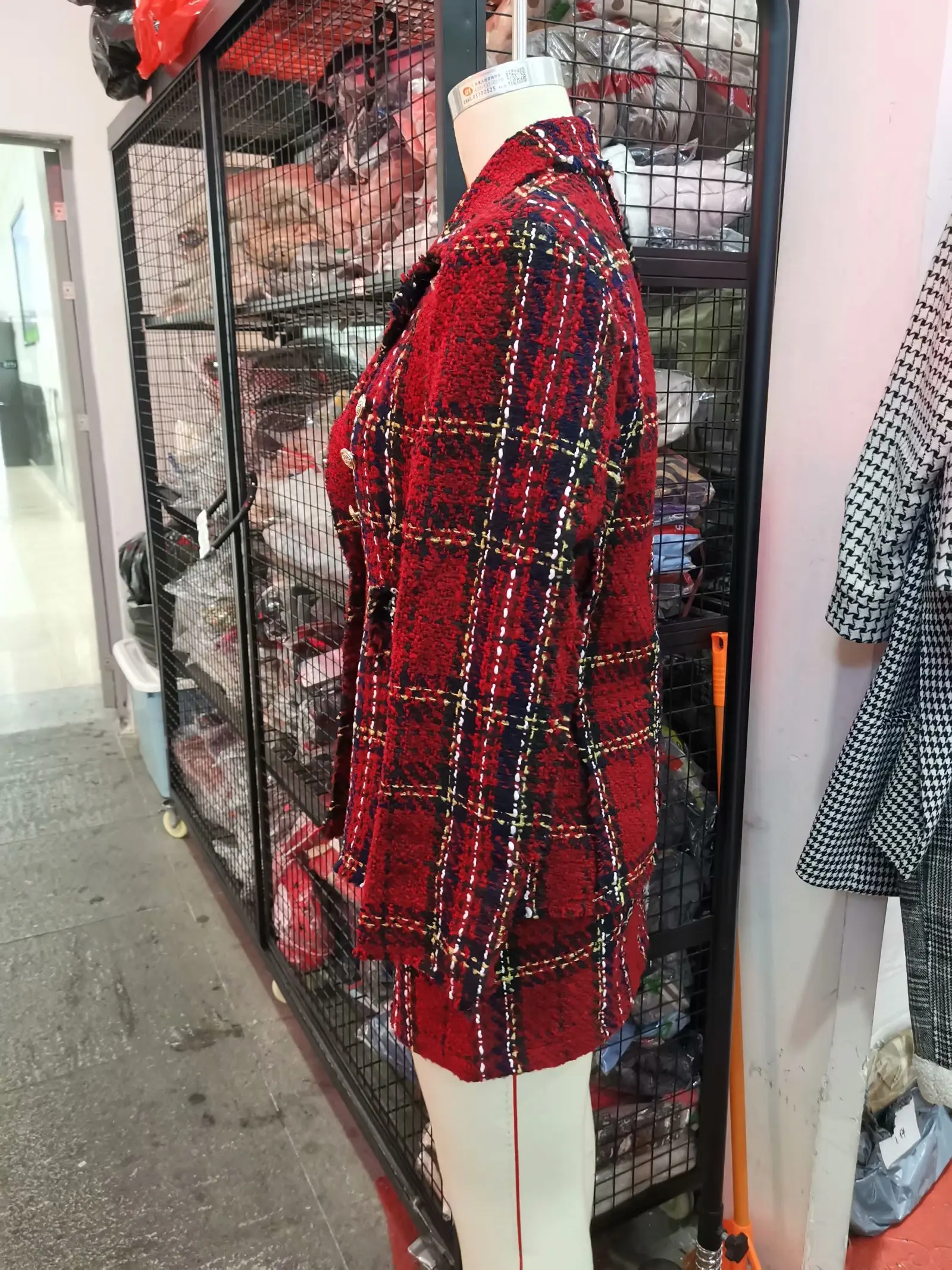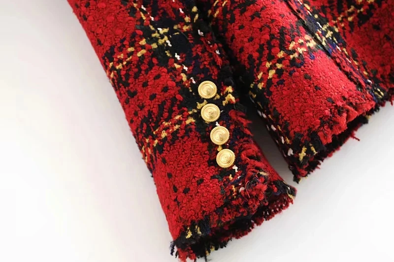 Tweed women red plaid blazers 2019 winter fashion women vintage jackets female patchwork blazer coats girls chic outfit clothes