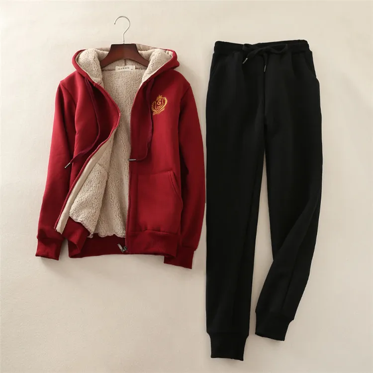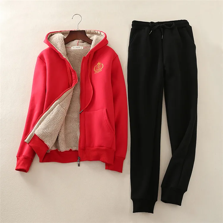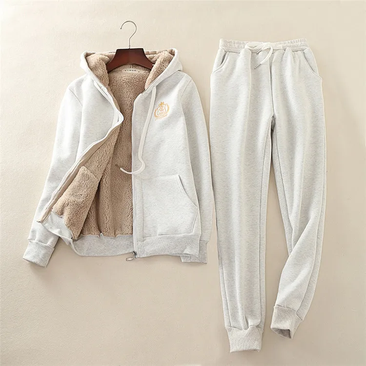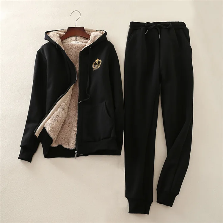 Two Piece Set Winter Women Cashmere Sweatshirt Sets Loose Plus Size 4xl Hooded Warm Jackets And Sweatpants 2020 Casual Tracksuit