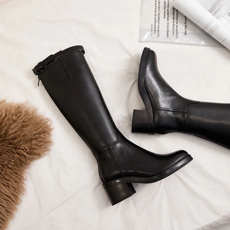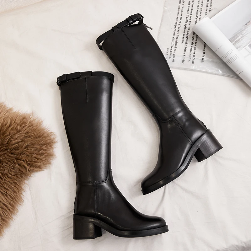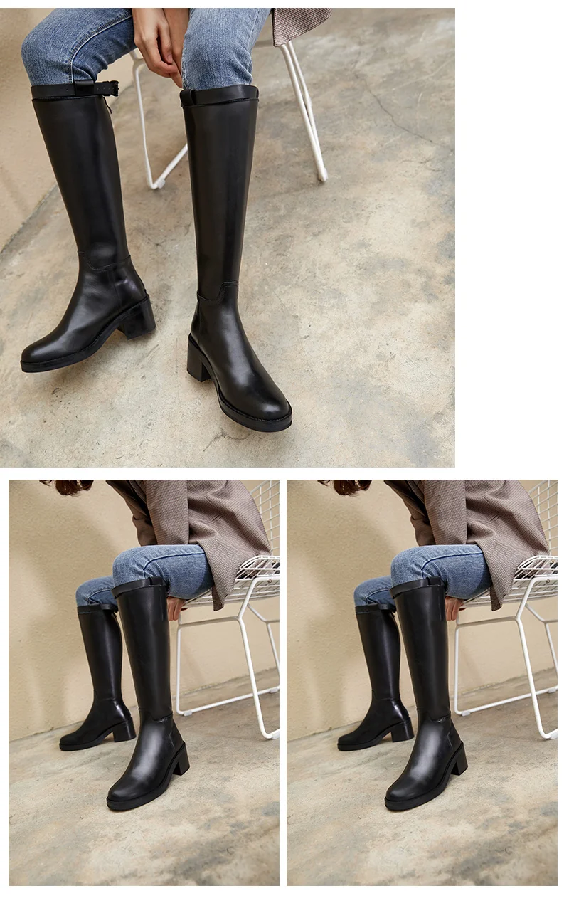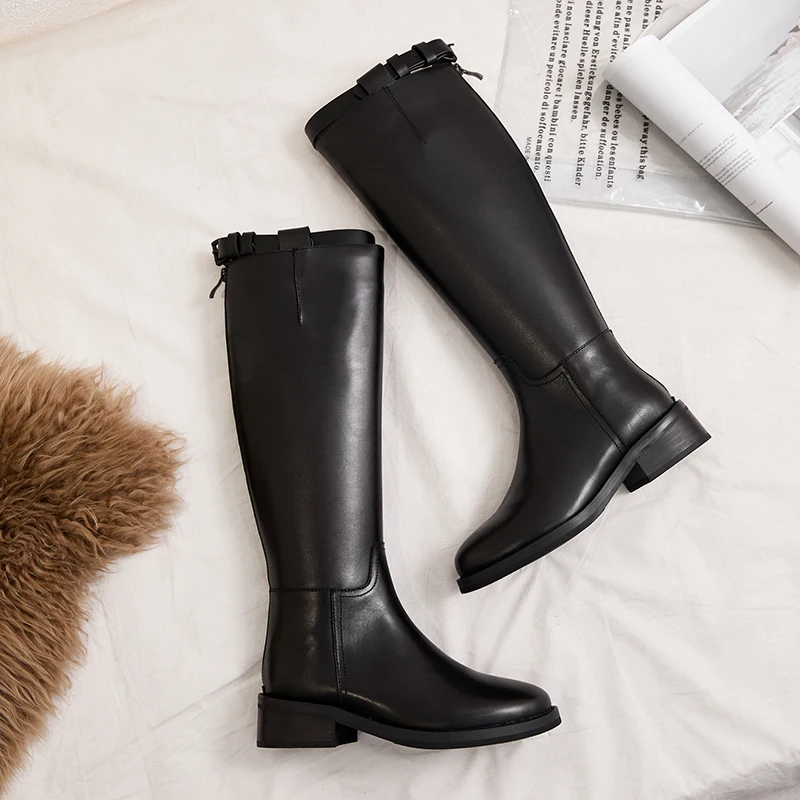 Vangull Women Genuine Leather Boots fashion Handmade Classic pointed toe European and American fashion women’s knee-high boots