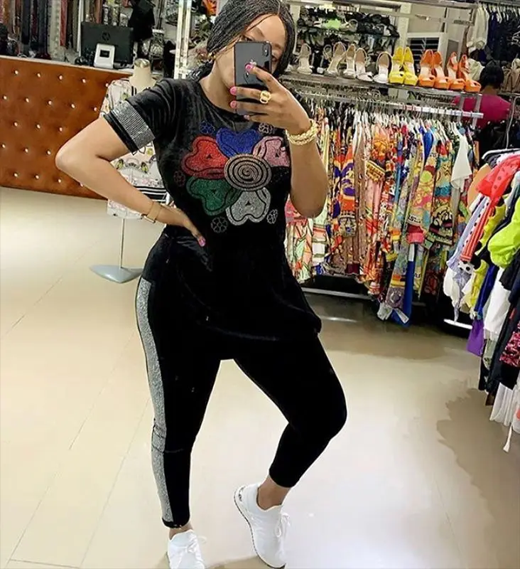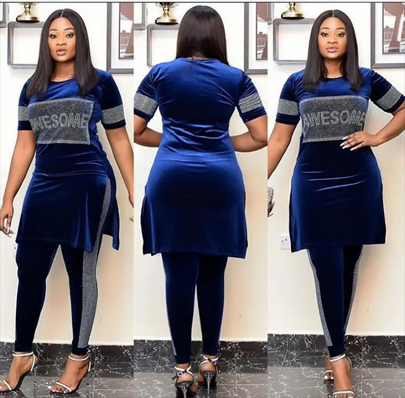 Velvet African Clothes 2 Piece Set Women Autumn Winter 2021 Africa Clothing Plus Size High Quality Famous Suit African Dresses