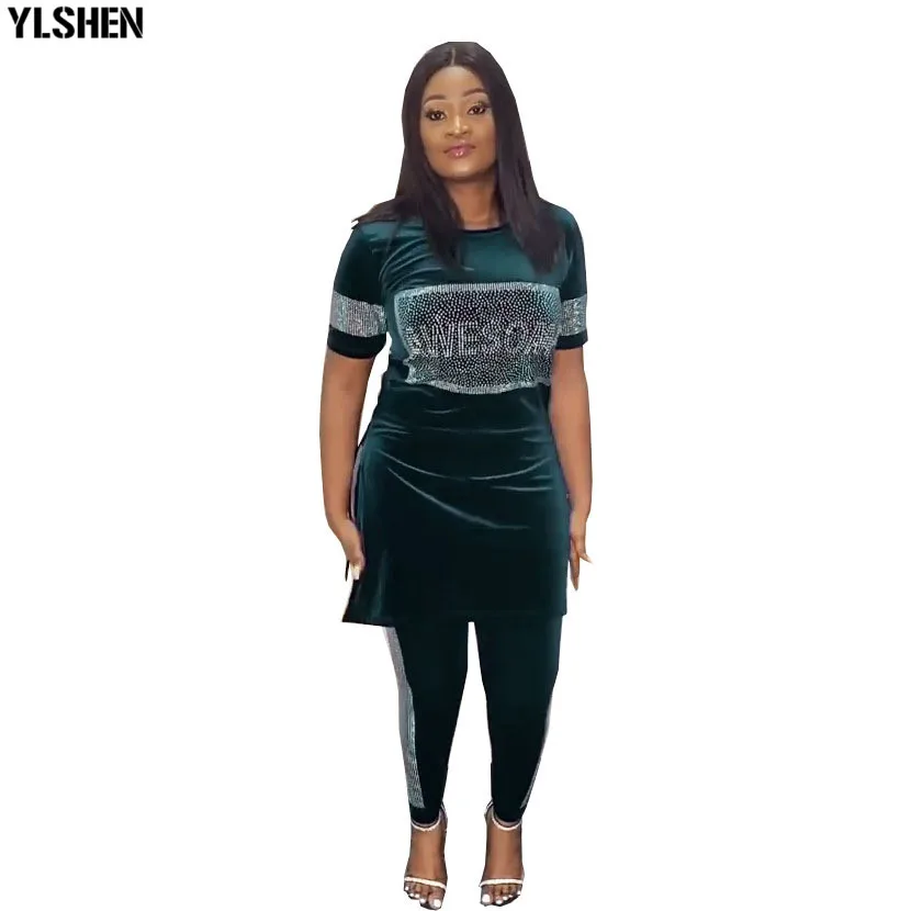 Velvet African Dresses for Women 2 Piece Set Dashiki Diamonds Dress Pants African Clothes Bazin Riche Famous Suit Vetement Femme
