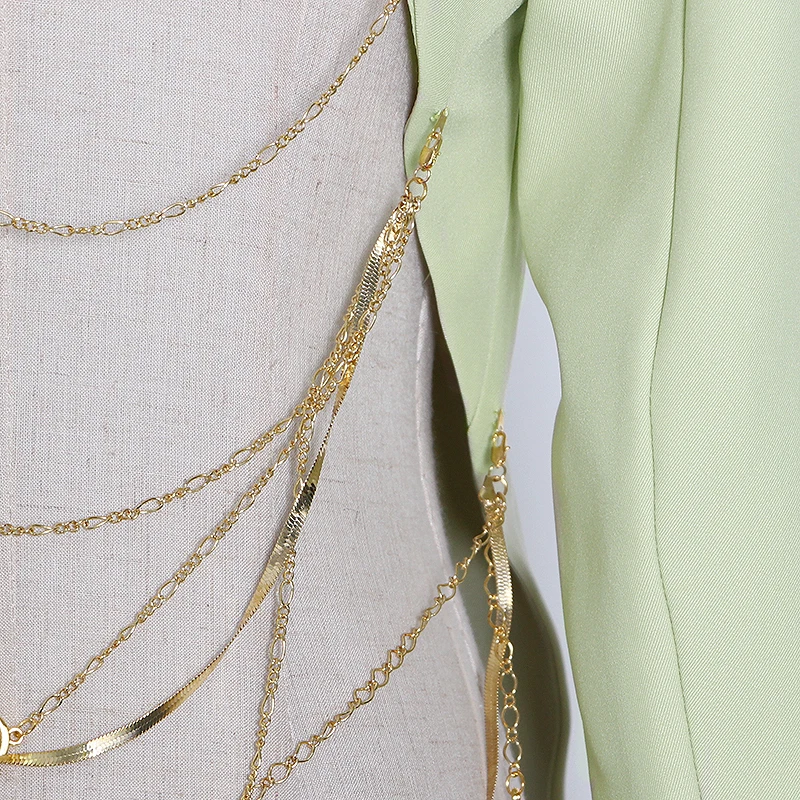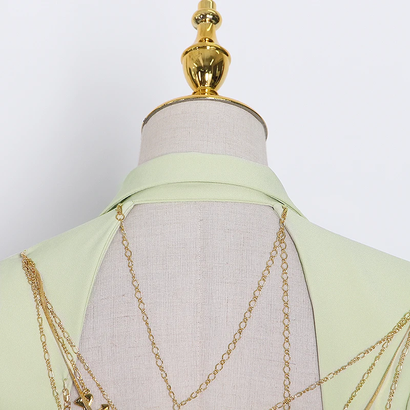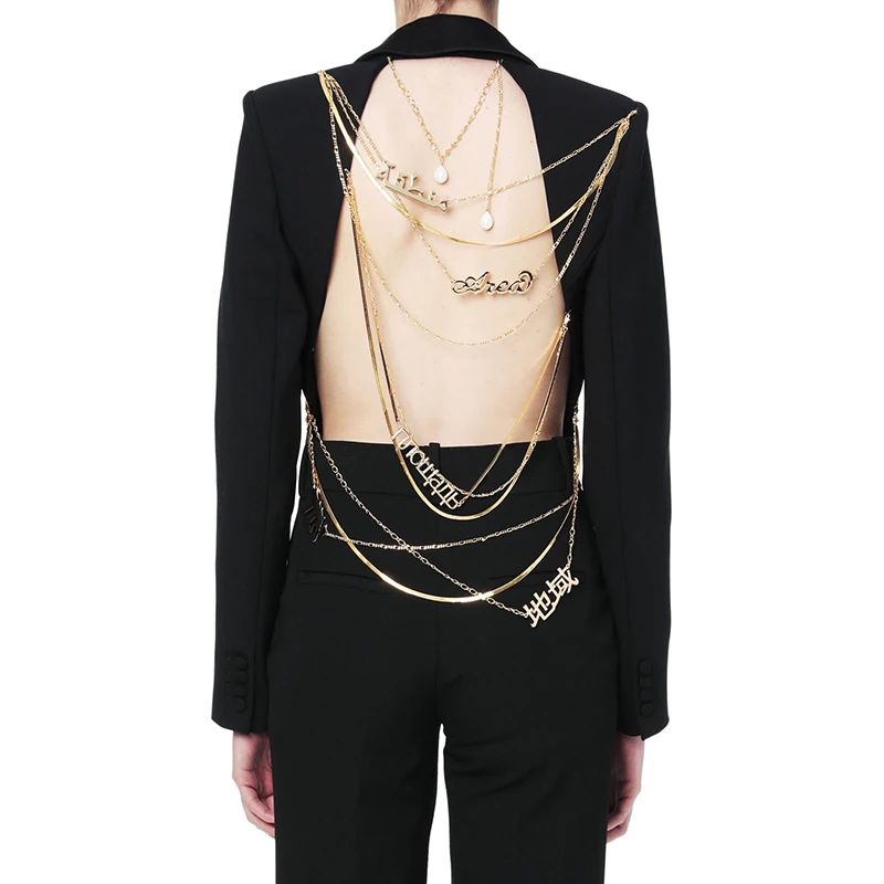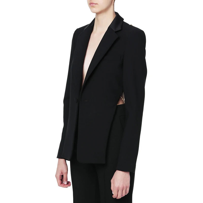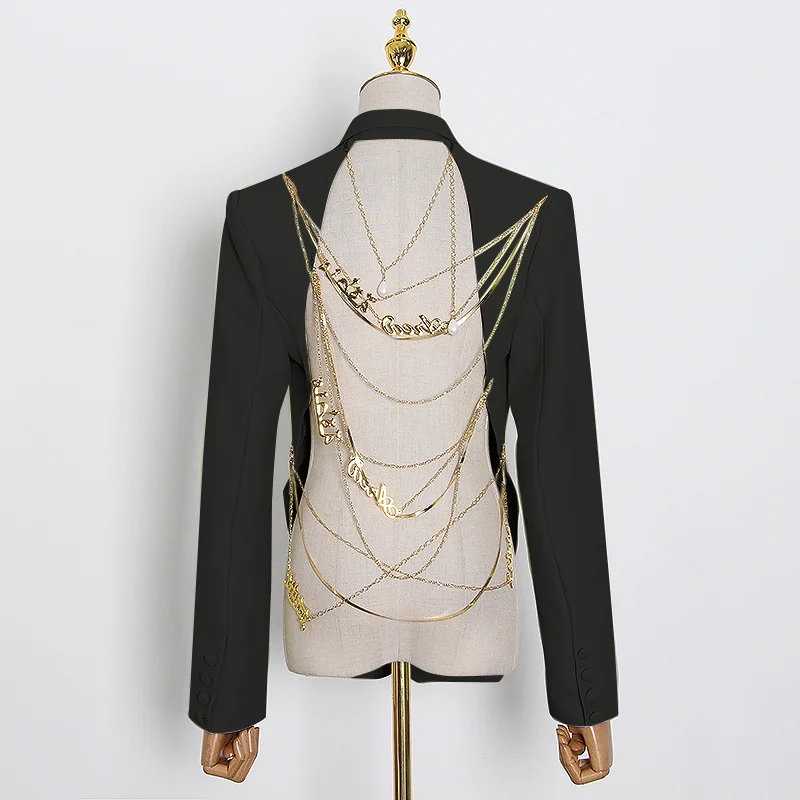 VGH Asymmetric Blazer For Women Notched Collar Long Sleeve Backless Sequined Chains Designer Coats Female 2020 Fashion New Tide