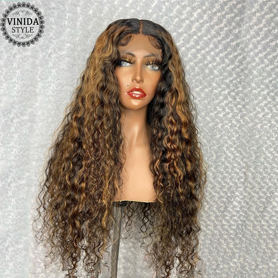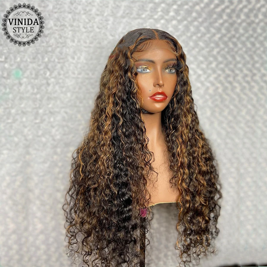 VINIDA STYLE Highlight Curly 13×6 Lace Front Human Hair Wigs Scalp Top Closure Wigs 150% Density With Baby Hair Non-Remy