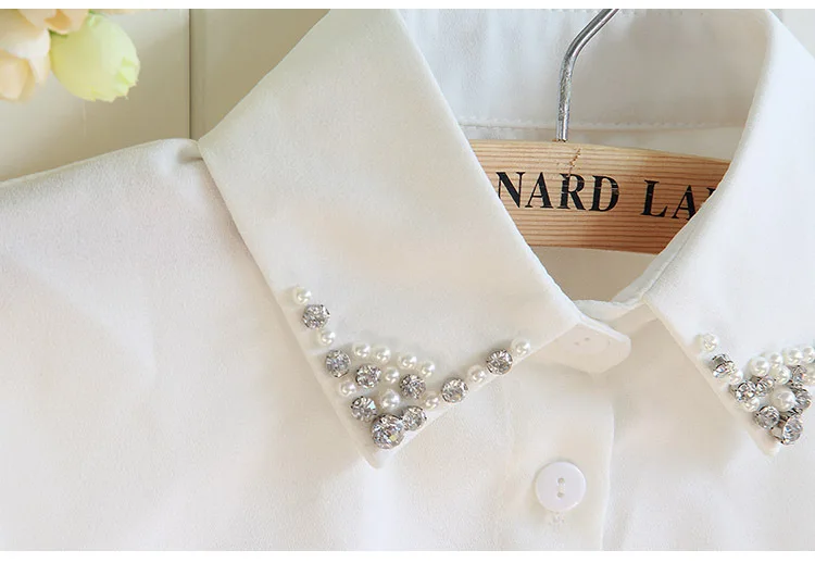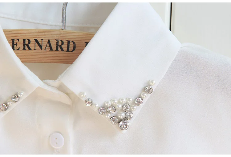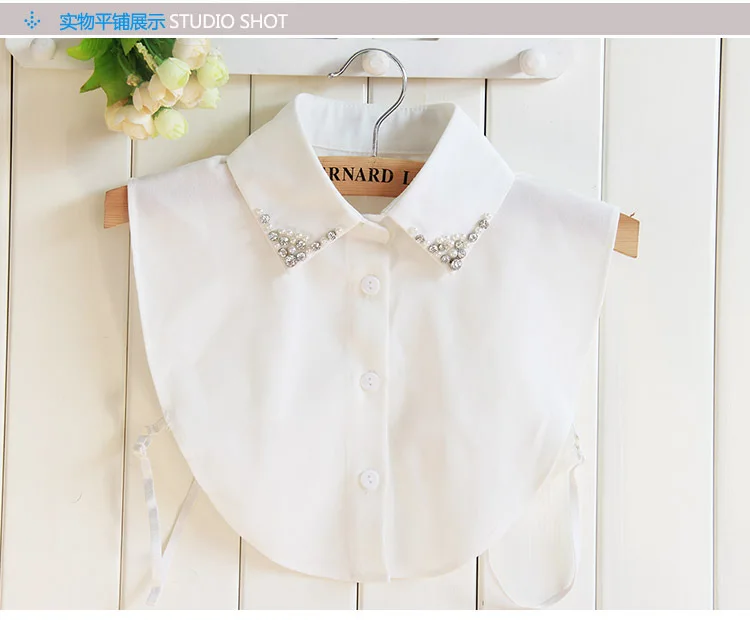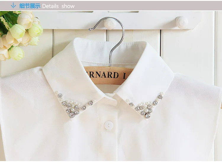 White Chiffon Women Fake Collar Beaded Crystal Plus size XL Faux Col Pearls Collar Shirt nep kraagje Tank Top Detachable Collars