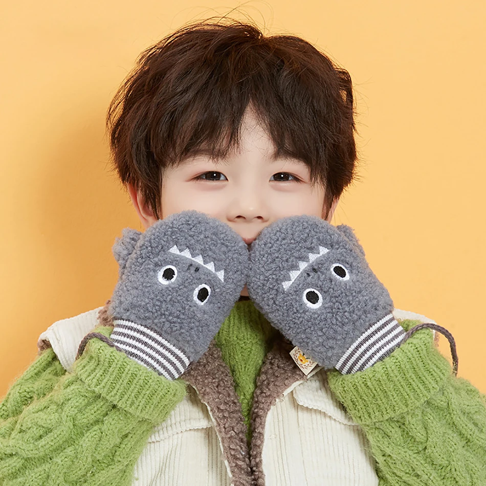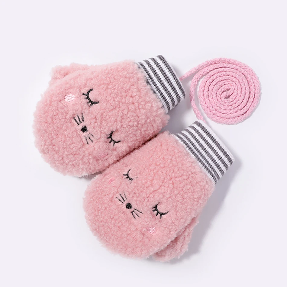 Winter Girls Thick Warm Kids Gloves Knit Soft Rabbit Fur Gloves Finger Mittens Cute Cartoon Plush Thick Cute Cat Touch Gloves