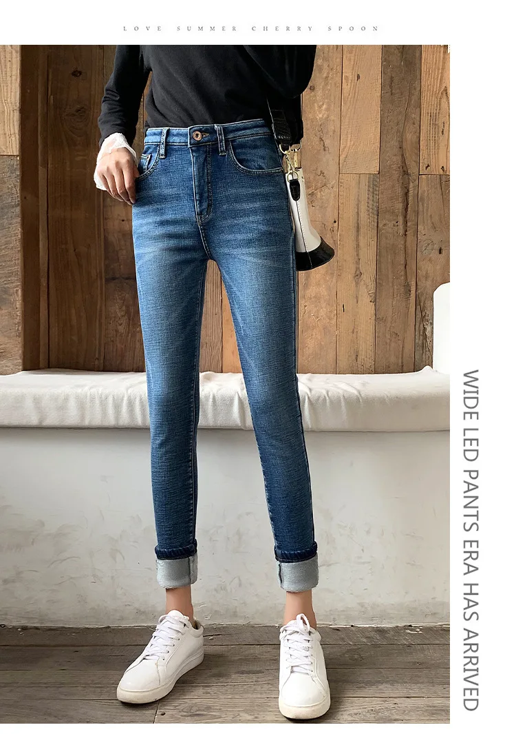 Winter Thick Plus Velvet Women High Waist Skinny Jeans Simple Fleece Warm Slim fit Stretch Ladies Casual Denim Pencil Pants