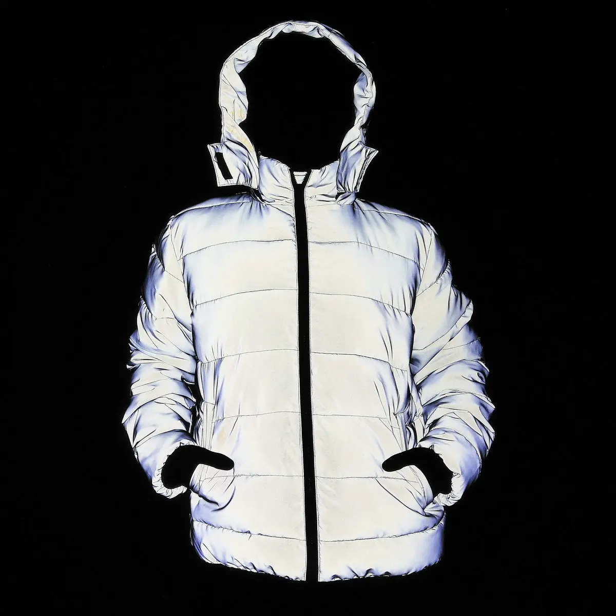 Reflective Light Winter Jacket Coat Women/Men Thick Warm Soft Cotton Night Jogger Hooded Parka Plus Size Loose Hip Hop Streetwear Nightwear Walk on Road Safely