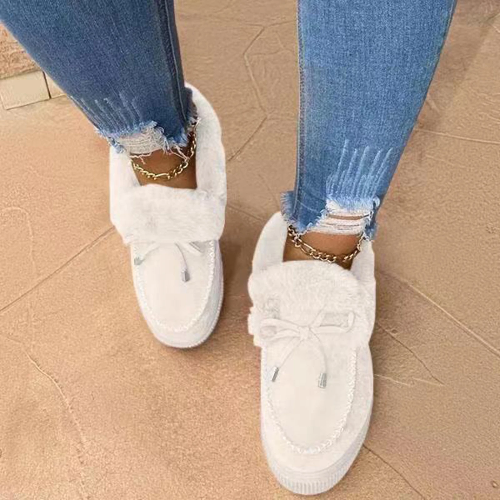 Winter Women Fur Shoes Fashion Bowknot Fluffy Slip-on Snow Boots Autumn Casual Warm Suede Plush Ladies Flat Platform Shoes