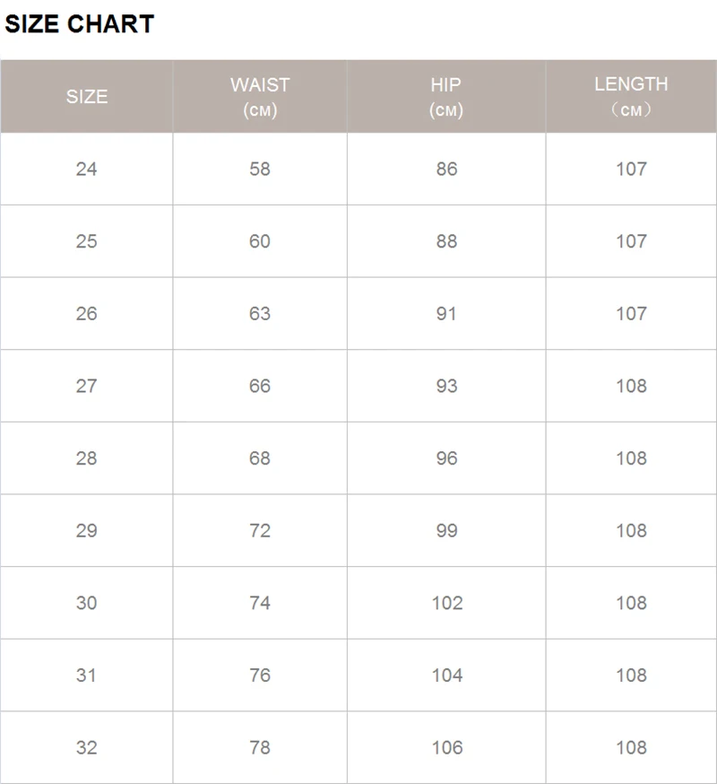 SizeWaist WidthHip WidthPant Length